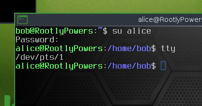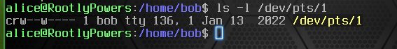 - Use ls to examine the owner and permission on the pseudo terminal.