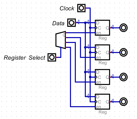 - We also need to control what register is being output, but we need a mulitplexor (mux) for that.