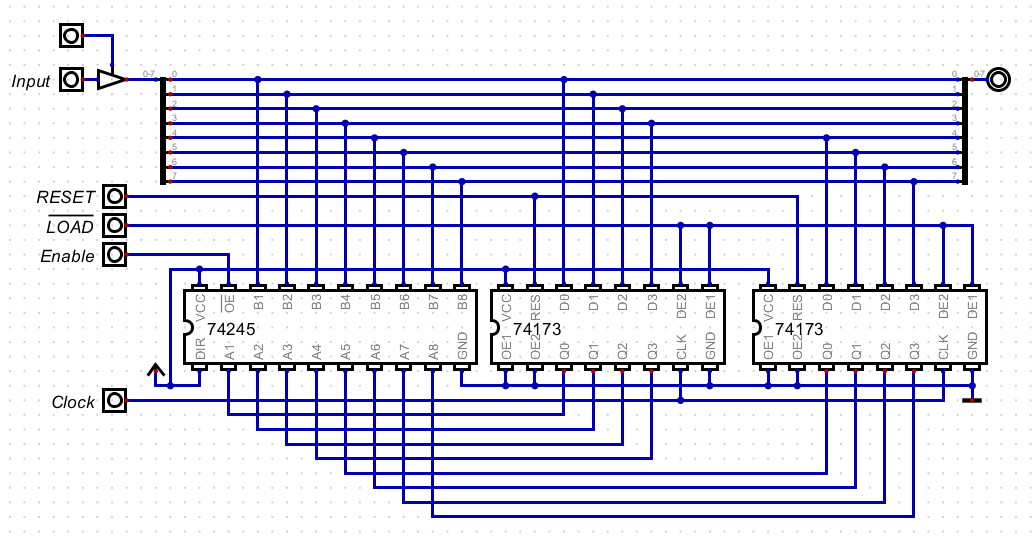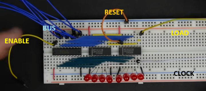 - At about 4:43 on the above video he hooks up two registers and transfers data.