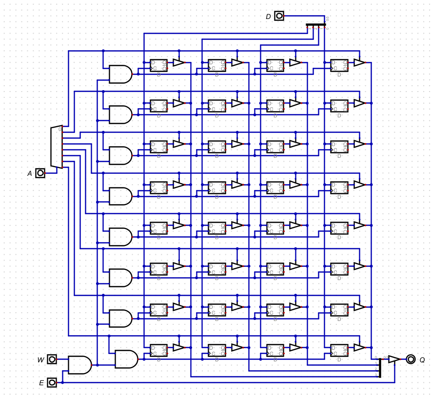 - This is then anded with the output of the decoder to select only one "word" to write to.
