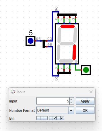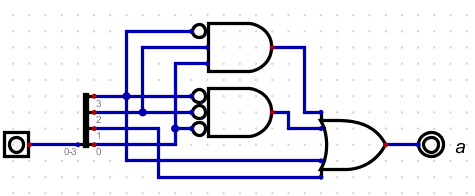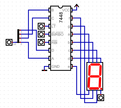 - 4 data inputs, A,B,C,D, A is bit 0, D is bit 3