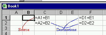 - =$a$1+$b$1 is an absolute reference. No matter where I copy