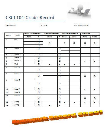 You have decided that you need to create a check-sheet to keep track of your homework in this class. Using the skills you learned in chapter 3, create such a document. See the reference image at the bottom of this page.