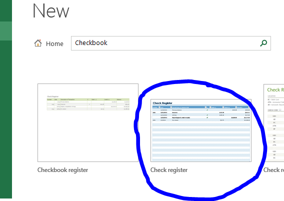 - Start a new excel workbook with the Check register template.