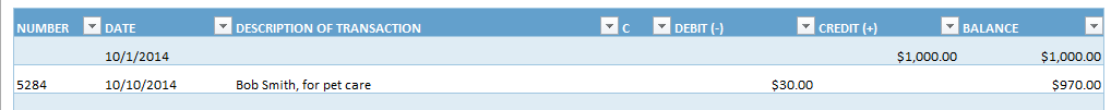 | Date | Check Number | Description | Credit/Debit | Amount |