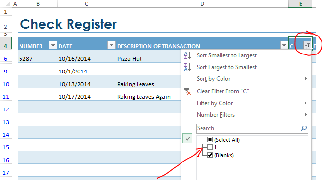 - Sort your transactions by check number, low to high