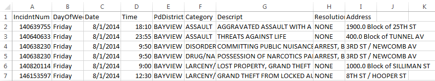 Incidents derived from SFPD Crime Incident Reporting system. Previous month. Updated daily.