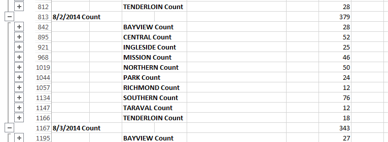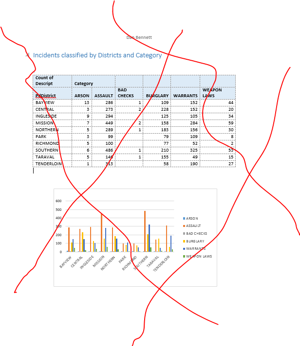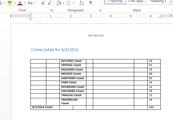 - Copy the Date, Time, PdDistrict, Category, Description and Resolution fields of all of the matching reports and past them into the word document.