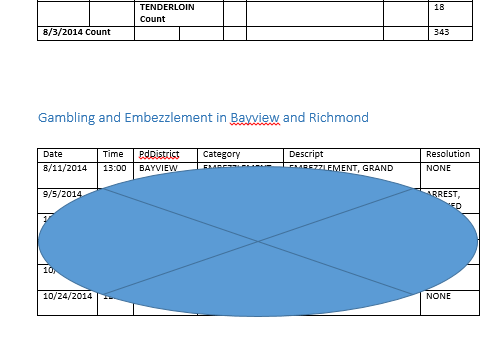 - Add a heading to the word document below the previous table, Gambling and Embezzlement in Bayview and Richmond.