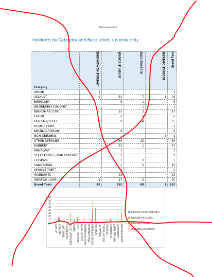 - Only display the following categories: Arson, Assault, Bad Checks, Burglary, Warrants and Weapon Laws.