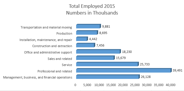 - A bar chart presenting the the number of workers employed in each industry.