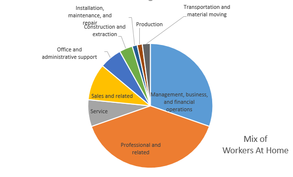 - A circle chart showing the number of workers who worked at home by industry.