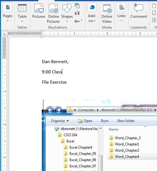 - Insert a screenshot of the new folder on the OneDrive in your word document.