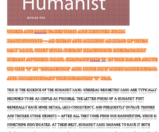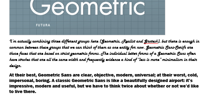 - Go to the paragraph after the Geometric picture and apply some truly horrid script font.