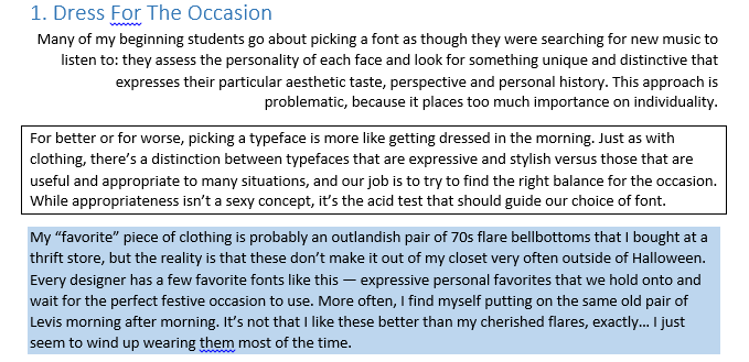 - Move "Five Principles for Choosing and Using Typefaces" to a new line.