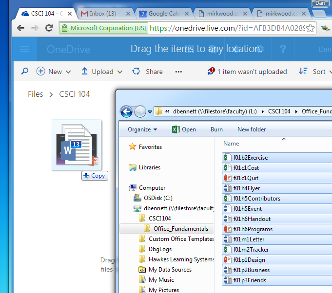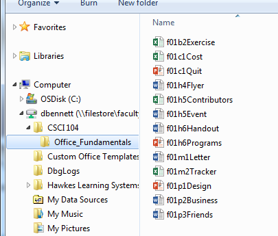 - You have Office Fundamentals folder inside of the CSCI 104 folder.