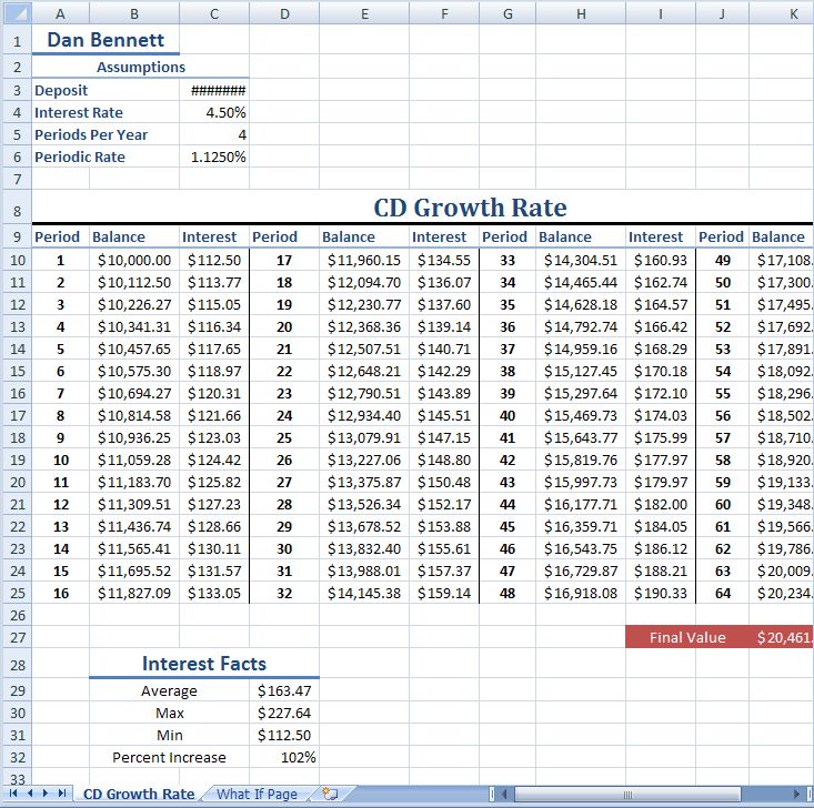 For this test you will be calculating the effect of interest rate on a Certificate of Deposit (CD).