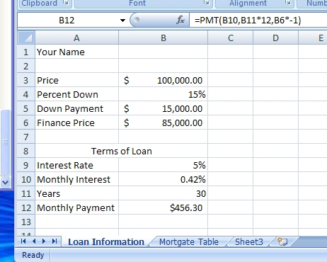 Place the amount from cell B3 of the Mortgage table in place of $XXX.XX
