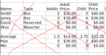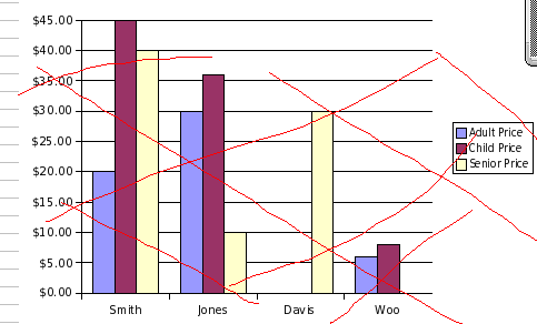 - Using the lookup function, compute the price for the adult, child and senior tickets in the table A9-K13
