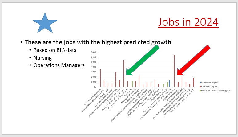 -  [2 points] The red arrow pointing to Registered nurses should appear with the text  Nursing.