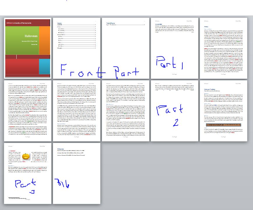 - Each page in each part should be numbered "Part X Page Y"