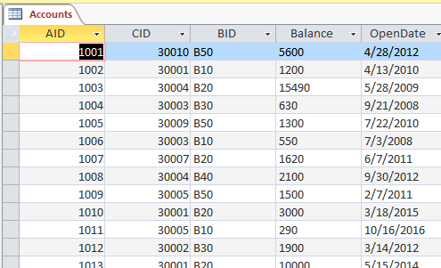 - You will see a referential Integrity Check in action, it will not allow you to enter an invalid branch.