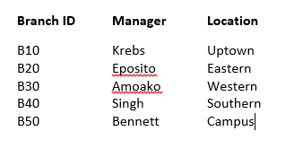 - In the first hands on exercise, you will create the branch table.