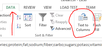 - Select the Text to Columns button.