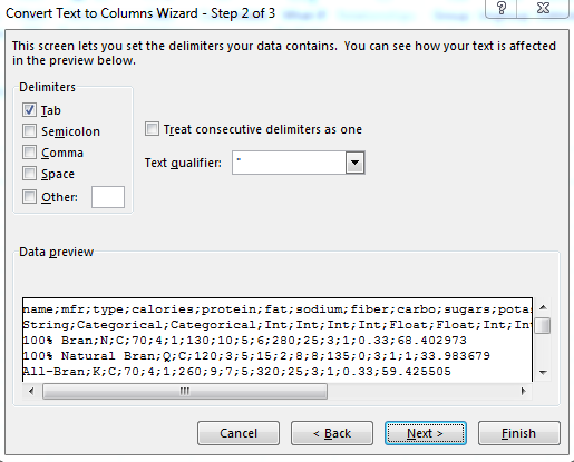 - If this were really a CSV (comma separated value) file, we would be fine, but it is delimited (or separated) by ;