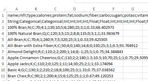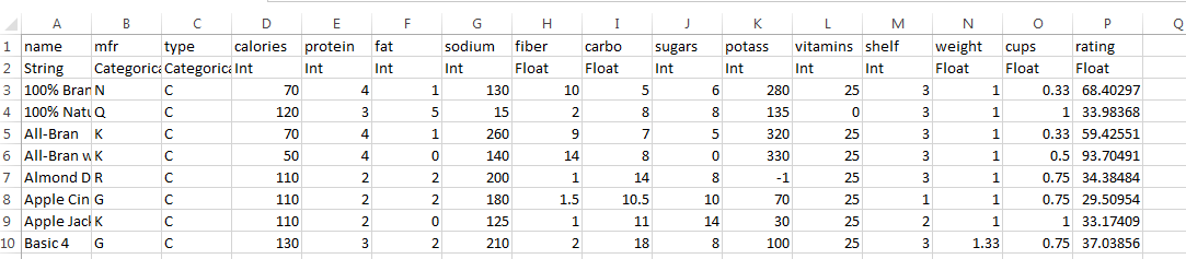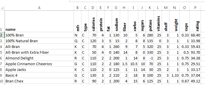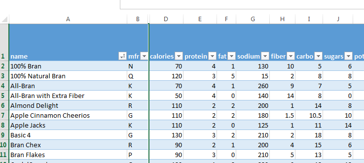 - And the type of cereal will be in column A.