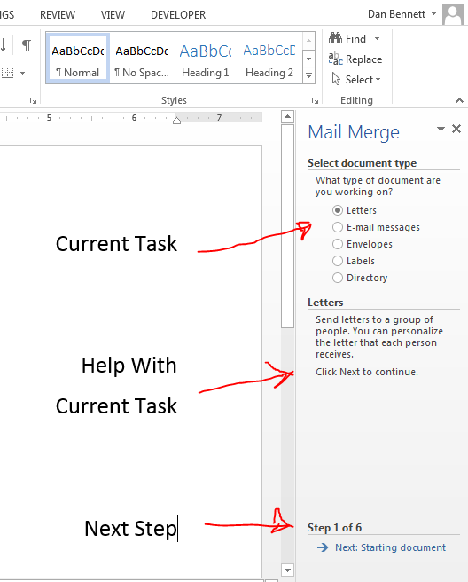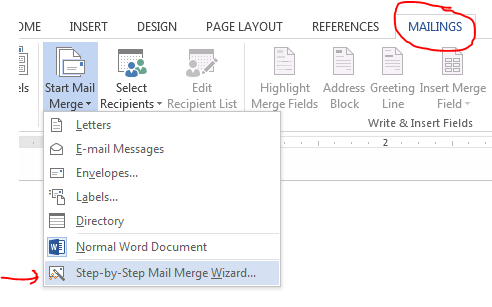 - Start the guided creation by selecting Step-by-Step Mail Merge Wizard...