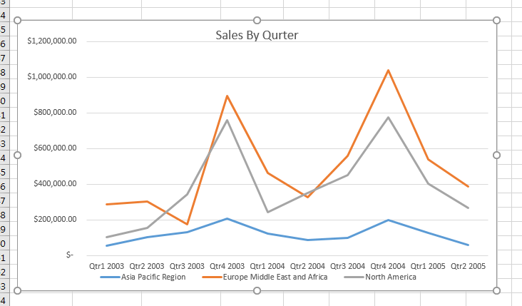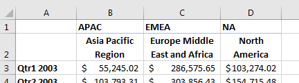 The second worksheet Sales By Territory contains quarterly sales by territory. The territory names can be looked up on the Information worksheet.