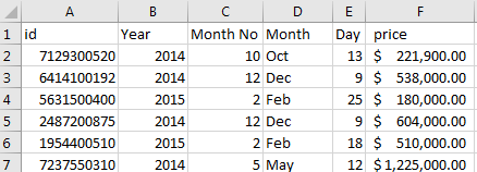 You will be dealing with another dataset from Kaggle.com. This one represents the prices of houses sold in King County Washington between May 2014 and May 2015. We will use this data for the next few exercises to see if we can find anything interesting about this housing market.