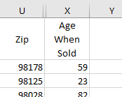 - Label column X, "Age When Sold"