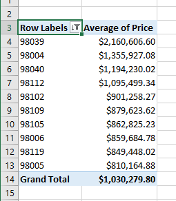 - This should show the zip codes with the highest average price first.