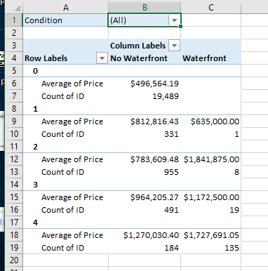- I don't understand what the Condition field means. Build a final pivot table to explore this.