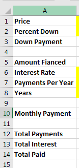 - On each of the loan worksheets insert the following labels