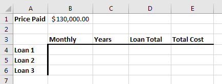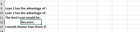 In the exercise we will build three different loan scenarios. There is an advanced feature that might make this simpler, but we will just use multiple worksheets for this exercise.