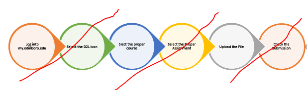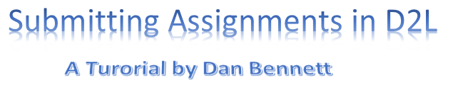 For this assignment you are to produce a document, including illustrations, showing how to submit assignments using D2L. There are two folders active in D2L for this class that you may use. For each step of the process insert images as described. When you are finished, submit the document you create to the correct D2L folder.