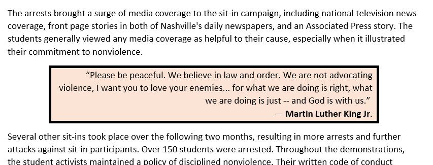 "Please be peaceful. We believe in law and order. We are not advocating violence, I want you to love your enemies... for what we are doing is right, what we are doing is just -- and God is with us."