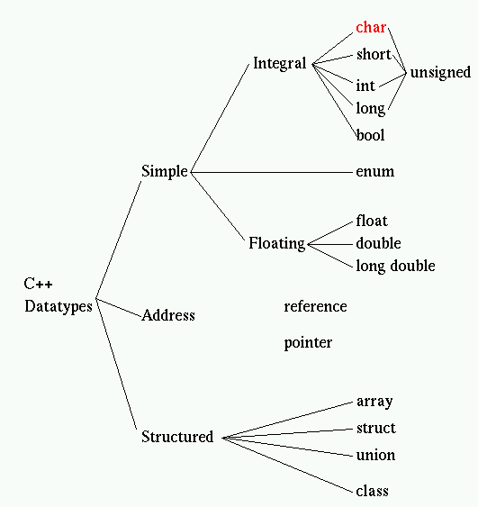 An bool is 1 bytes An char is 1 bytes An short is 2 bytes An int is 4 bytes An long is 4 bytes An float is 4 bytes An double is 8 bytes An long double is 12 bytes