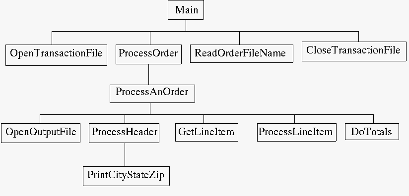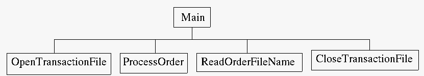 The main program will open and process the transaction file, one order at a time until all orders have been processed.