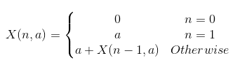 Give complete code for a recursive function which computes X(n,a). For this function n is an unsigned short, a is a double.