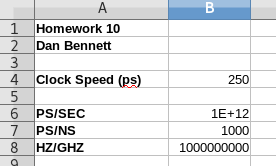 - In cell B10 place the label cycles/ps