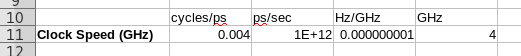 - In cell A11 place the Label Clock Speed (GHz)