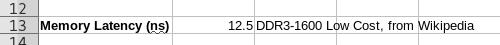 - Memory Latency (ns) in Cell A13- C13