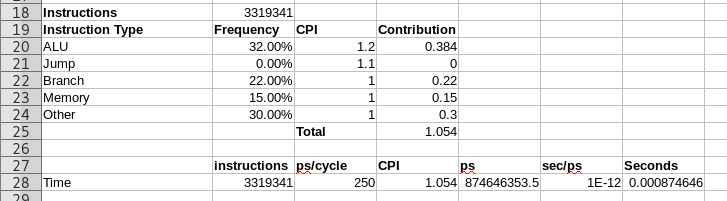 - Add a line that computes the perfect time for this program, assuming a CPI of 1.