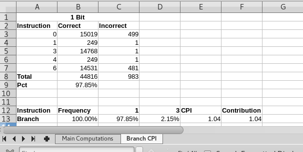 - Add a worksheet to compute the CPI for the branch instructions.