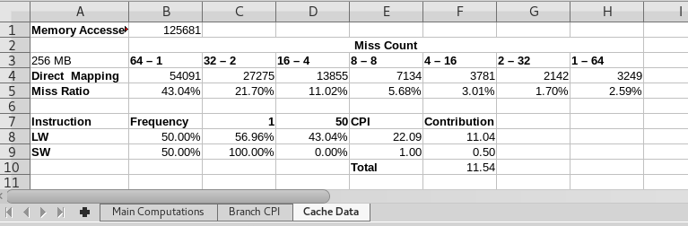 - D8 should be a value from the miss ratio row above.