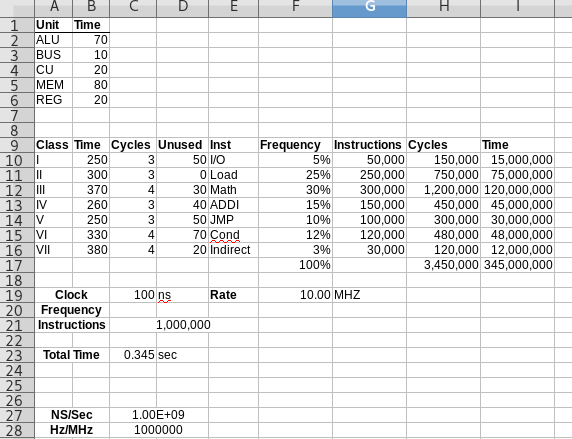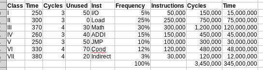 - Compute the cycles by multiplying the frequency by the cycles for each class